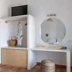 Die Villa Aphrodite'S Child Milos Maisonette hat eine voll ausgestattete Küche, die einen Geschirrspüler bietet. Gäste können im Restaurant O Zygos lecker speisen, das 350 Meter von dieser Villa entfernt liegt. Dank der Bushaltestelle Adamantas, die ca. 10 Minuten zu Fuß von hier entfernt liegt, können die Gäste Adamantas leicht erkunden.